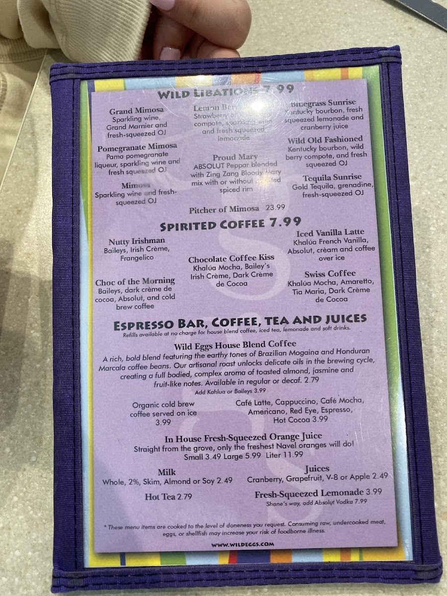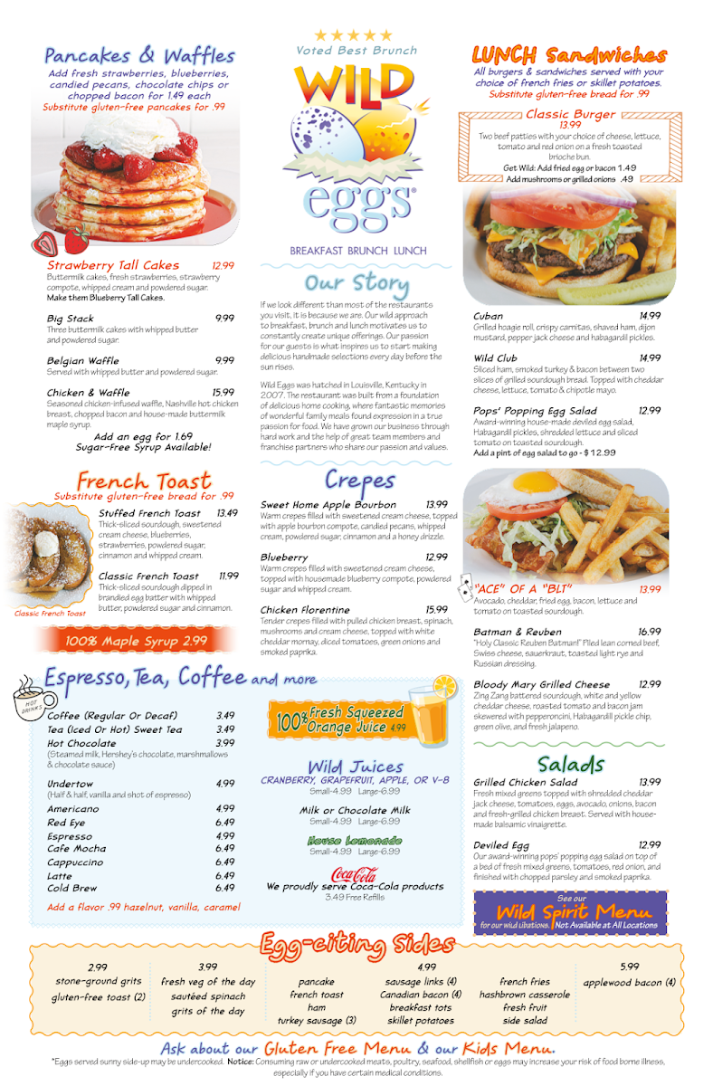 Three eggs cooked your way with bacon, sausage, skillet potatoes or stoneground grits, your choice of bread and a large buttermilk pancake