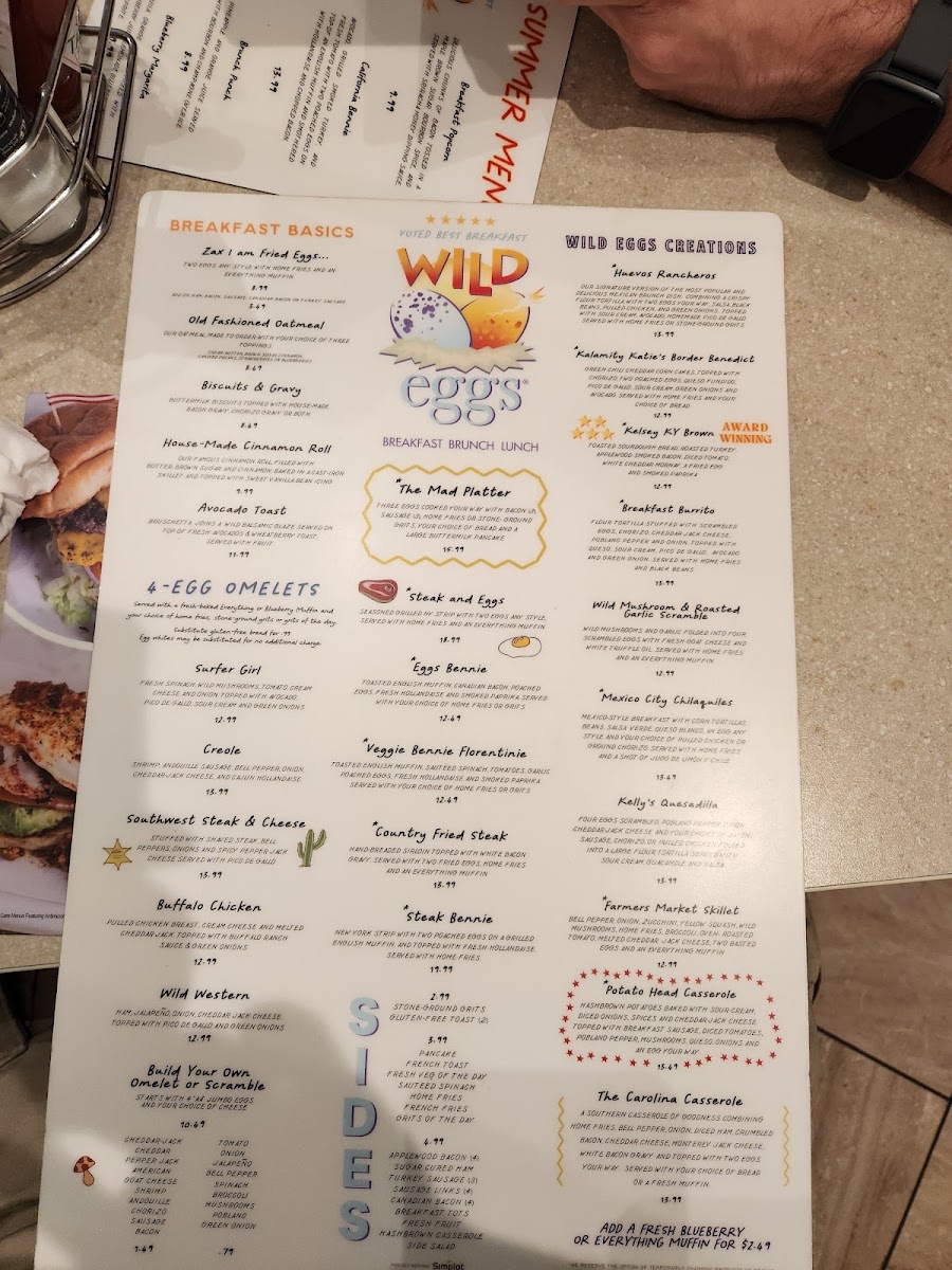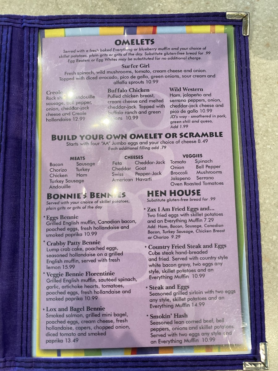 Three eggs in your choice of styles: scrambled, over easy, poached, sunny side up, basted, or hard boiled.