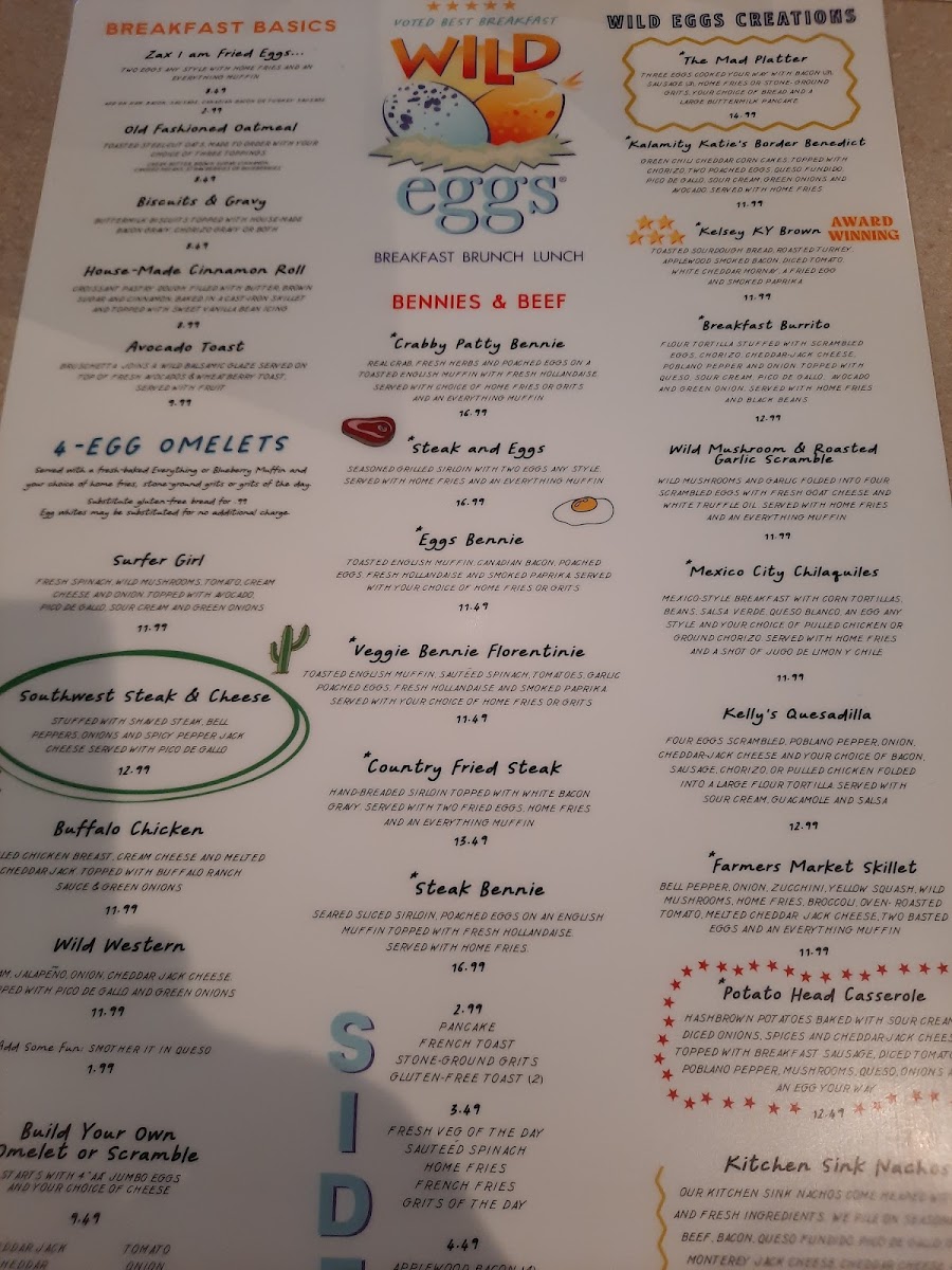 Hand-breaded sirloin topped with white bacon gravy. Served with two fried eggs, skillet potatoes and an Everything muffin